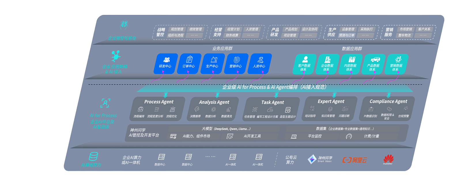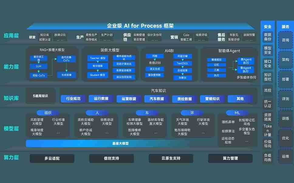 端到端的一站式AI工作空间深度融合了从企业战略规划到日常经营的全流程业务板块,,,定向解决车企内部领域多、、、部门多、、链条长、、、场景碎片化等难题,,支持车企快速构建以AI为核心的生产力写作体系,,,实现任务执行与AI能力的无缝集成与交互